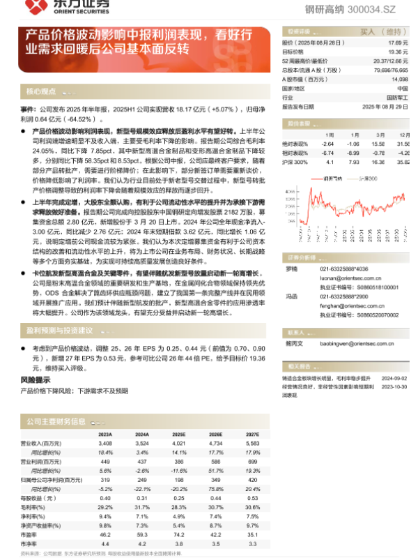 【东方证券】【20250829】钢研高纳-产品价格波动影响中报利润表现_看好行业需求回暖后公司基本面反转-5页 证券期货研究报告
