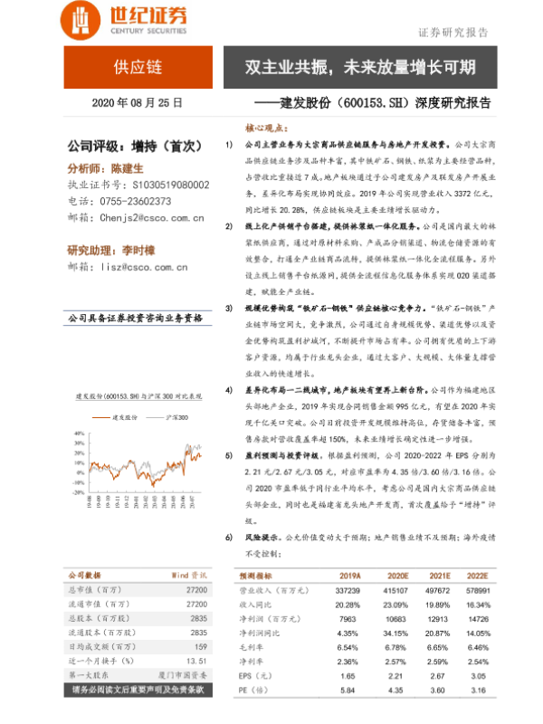 【世纪证券】【20200825】建发股份-600153.SH-深度研究报告:双主业共振,未来放量增长可期-33页 行业研究