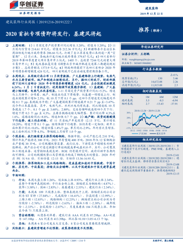 【华创证券】【20191222】2020首批专项债即将发行,基建风将起-19页 行业研究