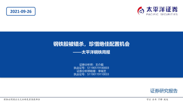 【太平洋证券】【20210926】20210926-太平洋-钢铁周报:钢铁股被错杀,珍惜绝佳配置机会-50页 行业研究