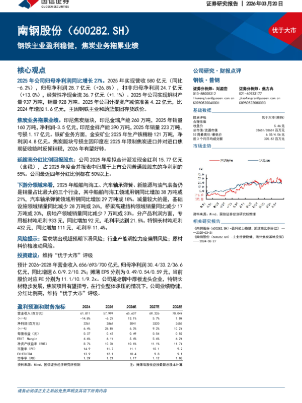 【国信证券】【202603】钢铁主业盈利稳健,焦炭业务拖累业绩-7页 证券期货研究报告