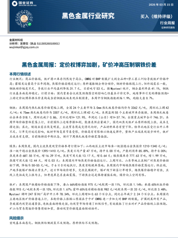 【国金证券】【202403】黑色金属周报-14页 证券期货研究报告