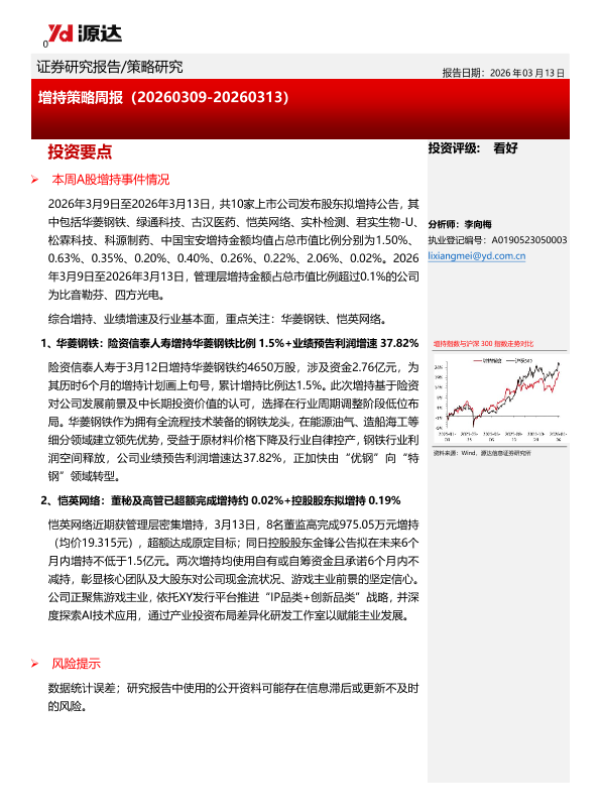 【源达信息】【202603】增持策略周报(20260309-20260313)-9页 证券期货研究报告