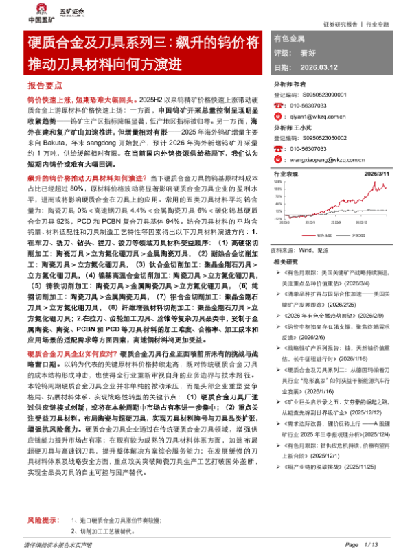 【五矿证券】【202603】硬质合金及刀具系列三:飙升的钨价将推动刀具材料向何方演进-13页 证券期货研究报告