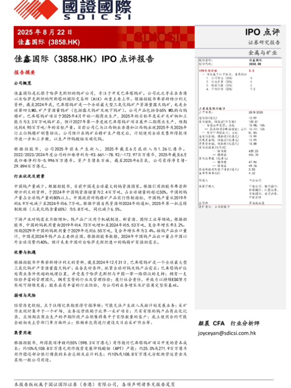 【国证国际】【20250822】佳鑫国际-IPO点评报告-3页 证券期货研究报告