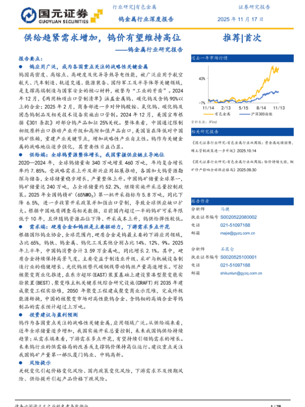 【国元证券】【202511】供给趋紧需求增加,钨价有望维持高位——钨金属行业研究报告-28页 证券期货研究报告