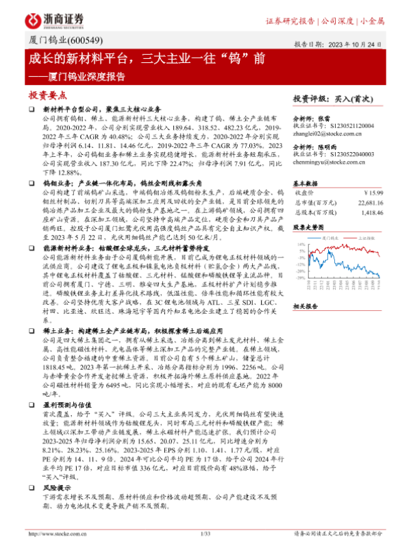 【浙商证券】【20231024】20231024-浙商证券-厦门钨业-600549.SH-厦门钨业深度报告:成长的新材料平台,三大主业一往“钨”前-33页 行业研究