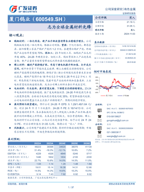 【广发证券】【20241103】厦门钨业(600549.SH)志为全球金属材料先锋-37页 行业研究