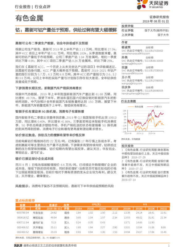 【天风证券】【20190801】钴:嘉能可钴产量低于预期,供给过剩有望大幅缓解-2页 行业研究