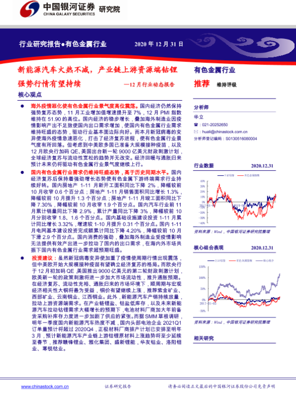 【银河证券】【20201231】20201231-中国银河-有色金属:12月行业动态报告:新能源汽车火热不减,产业链上游资源端钴锂强势行情有望持续-29页 行业研究