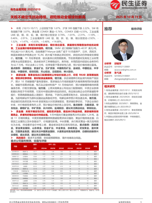 【民生证券】【202510】有色金属周报:关税不确定性扰动持续,避险推动金银续创新高-30页 证券期货研究报告
