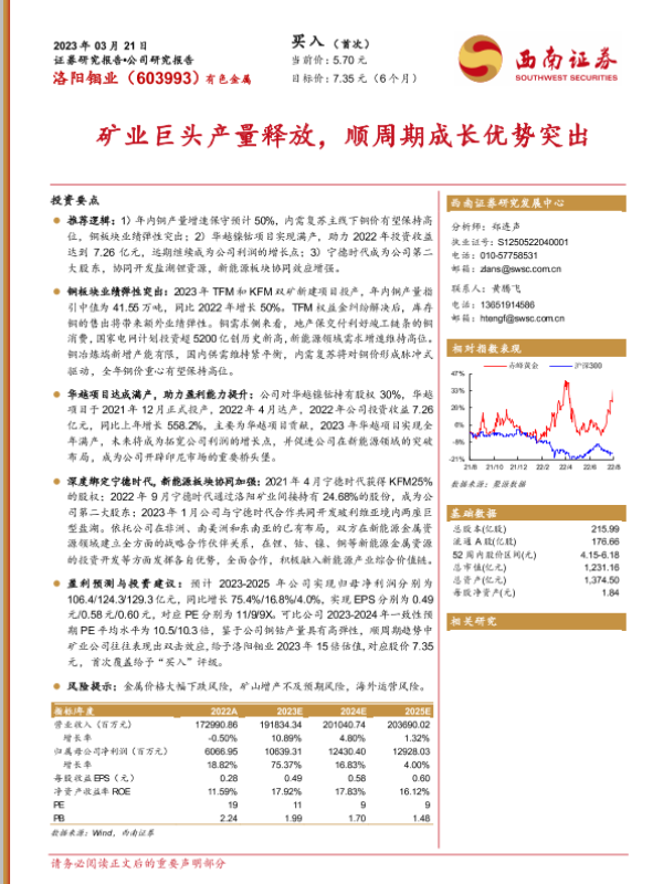 【西南证券】【20230321】矿业巨头产量释放,顺周期成长优势突出-23页 行业研究