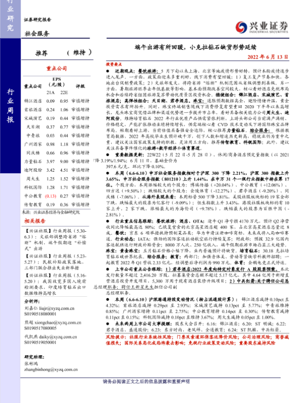 【兴业证券】【20220613】端午出游有所回暖,小克拉钻石缺货形势延续-15页 行业研究