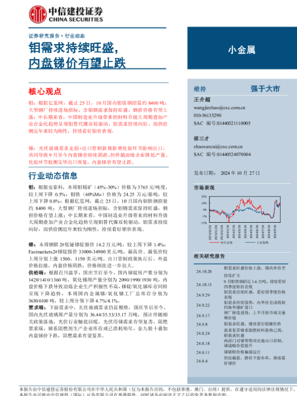【中信建投证券】【20241027】小金属行业动态:钼需求持续旺盛,内盘锑价有望止跌-10页 行业研究