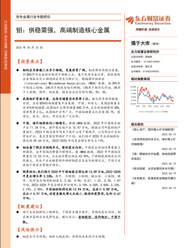 【东方财富证券】【20230523】20230523-东方财富证券-有色金属行业专题研究:钼:供稳需强,高端制造核心金属-29页 行业研究