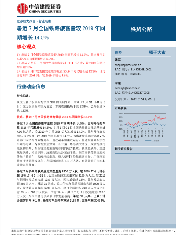 【中信建投证券】【20230806】暑运7月全国铁路旅客量较2019年同期增长14.0%-18页 行业研究