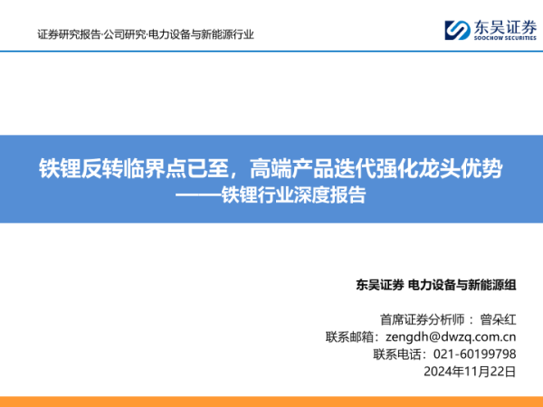【东吴证券】【20241122】铁锂行业深度报告:铁锂反转临界点已至,高端产品迭代强化龙头优势-44页 行业研究