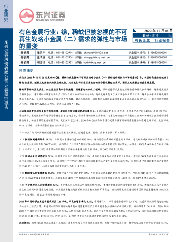 【东兴证券】【20201204】有色金属行业:锑,稀缺但被忽视的不可再生战略小金属(二)需求的弹性与市场的量变-22页 行业研究