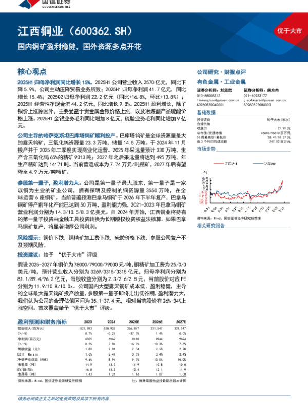 【国信证券】【202509】江西铜业(600362.SH)国内铜矿盈利稳健,国外资源多点开花-10页 证券期货研究报告