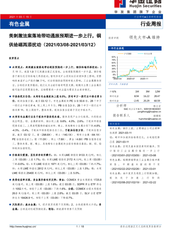 【华金证券】【20210315】20210315-华金证券-有色金属行业周报:美刺激法案落地带动通胀预期进一步上行,铜供给端再添扰动-18页 行业研究