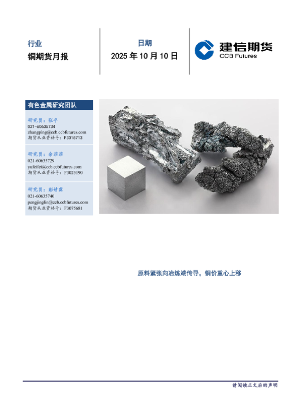 【建信期货】【202510】铜期货月报_原料紧张向冶炼端传导_铜价重心上移-12页 证券期货研究报告