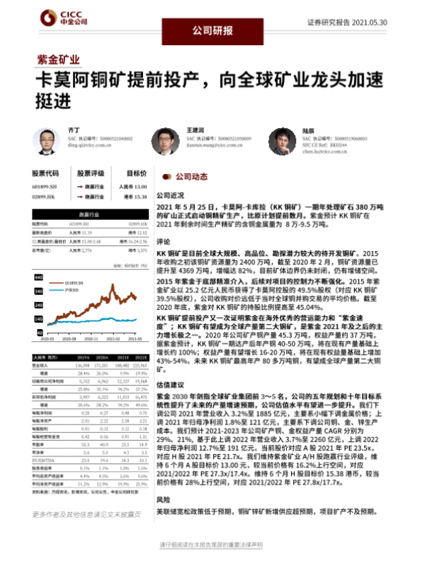 【中金公司】【20210530】紫金矿业-卡莫阿铜矿提前投产,向全球矿业龙头加速挺进-20页 行业研究