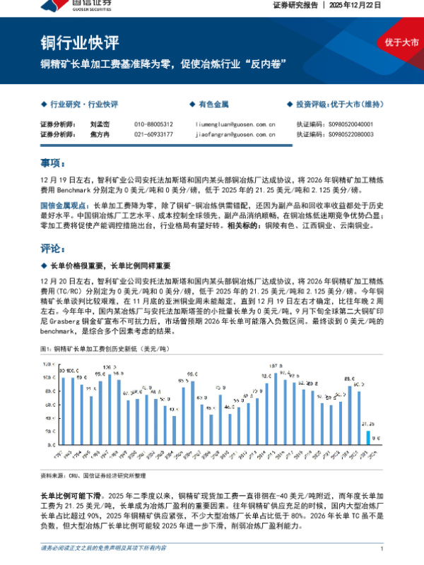 【国信证券】【202512】铜精矿长单加工费基准降为零,促使冶炼行业“反内卷”-6页 行业研究