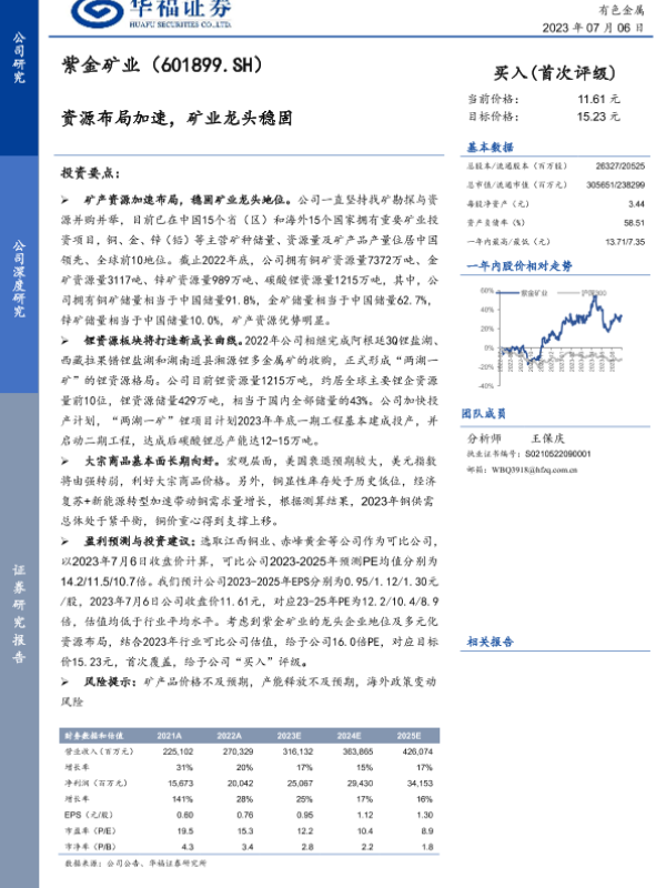 【华福证券】【20230706】紫金矿业-资源布局加速,矿业龙头稳固-45页 行业研究