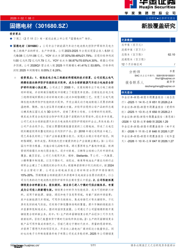 【华金证券】【202602】新股覆盖研究:固德电材-11页 证券期货研究报告