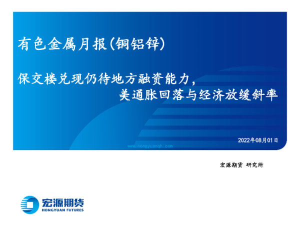 【宏源期货】【20220801】有色金属月报(铜铝锌):保交楼兑现仍待地方融资能力,美通胀回落与经济放缓斜率-39页 行业研究