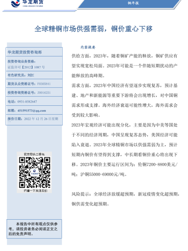 【华龙期货】【20221226】铜年报:全球精铜市场供强需弱,铜价重心下移-23页 行业研究