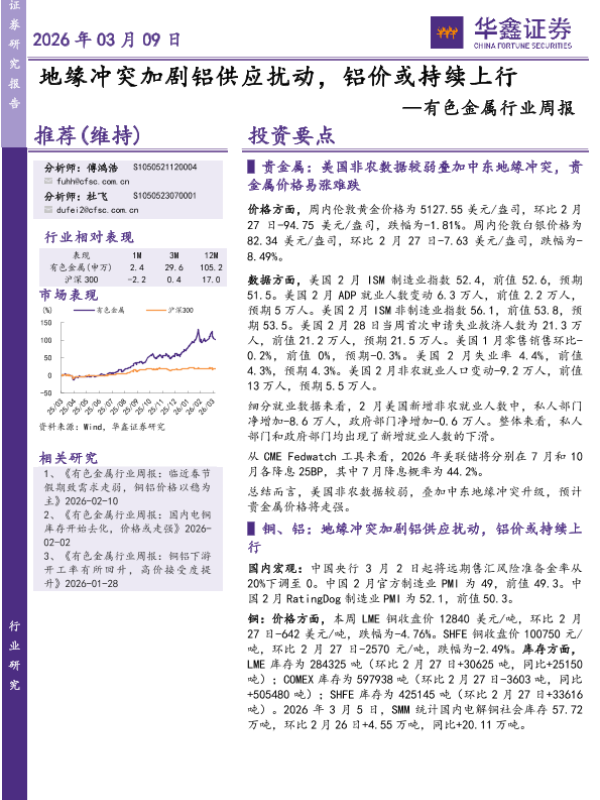 【华源证券】【202603】有色金属大宗金属周报(2026/3/9-2026/3/14)-16页 证券期货研究报告