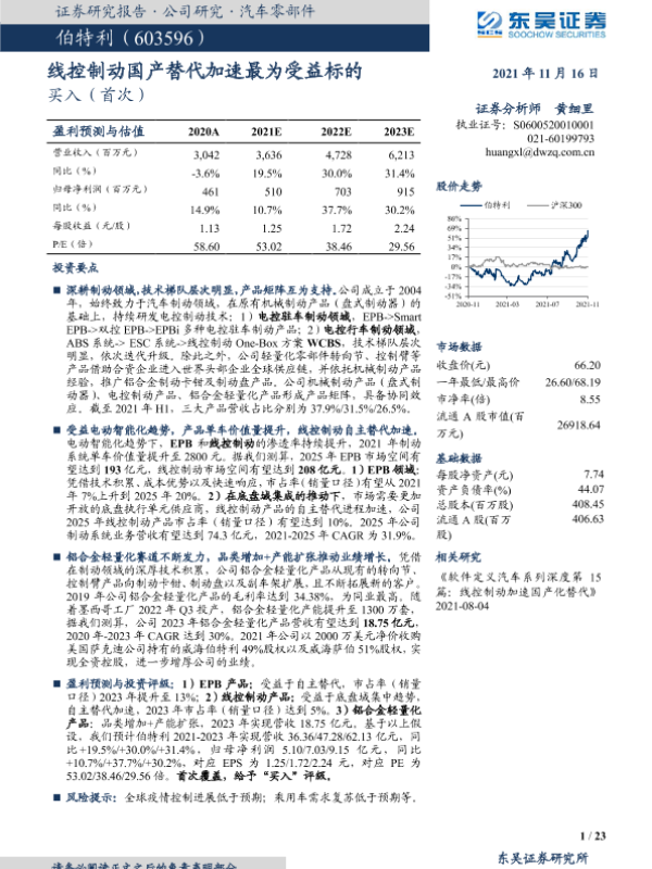 【东吴证券】【20211116】线控制动国产替代加速最为受益标的-23页 行业研究