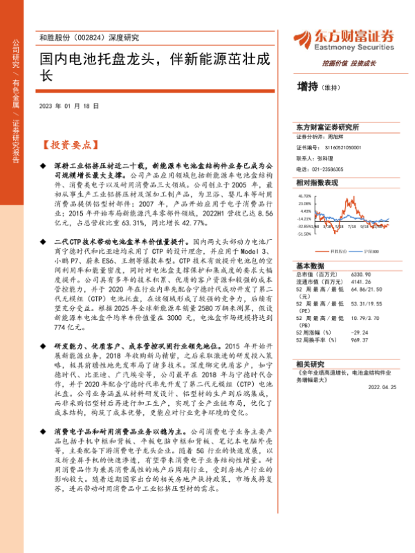 【东方财富证券】【20230118】20230118-东方财富证券-和胜股份-002824.SZ-深度研究:国内电池托盘龙头,伴新能源茁壮成长-22页 行业研究