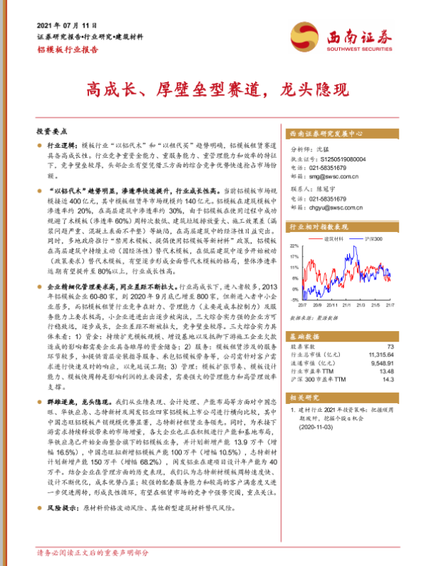 【西南证券】【20210711】铝模板行业报告:高成长、厚壁垒型赛道,龙头隐现-27页 行业研究