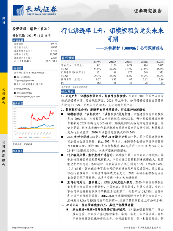 【长城证券】【20211215】20211215-长城证券-志特新材-300986.SZ-公司深度报告:行业渗透率上升,铝模板租赁龙头未来可期-37页 行业研究