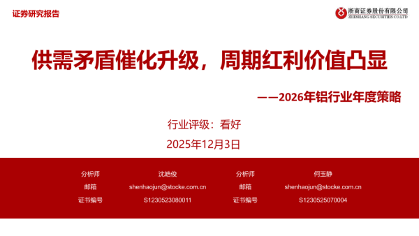 【浙商证券】【202512】2026年铝行业年度策略_供需矛盾催化升级_周期红利价值凸显-31页 证券期货研究报告