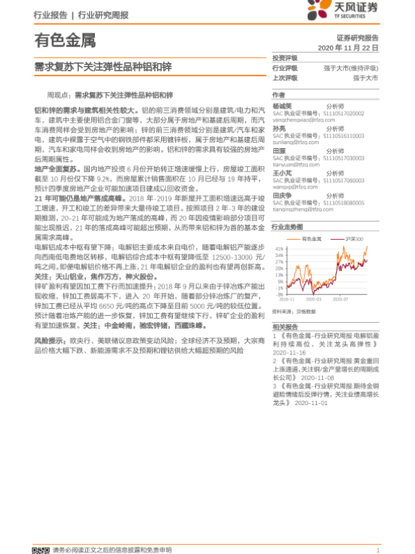 【天风证券】【20201122】20201122-天风证券-有色金属行业研究周报:需求复苏下关注弹性品种铝和锌-13页 行业研究