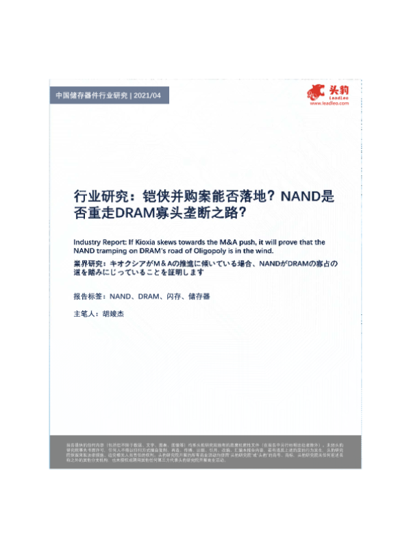 【头豹研究院】【20210506】行业研究:铠侠并购案能否落地?NAND是否重走DRAM寡头垄断之路?-14页 行业研究