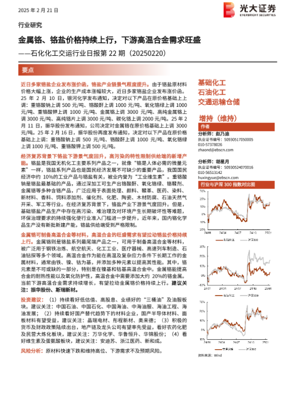 【光大证券】【20250221】20250221-光大证券-石化化工交运行业日报第22期:金属铬、铬盐价格持续上行,下游高温合金需求旺盛-11页 行业研究