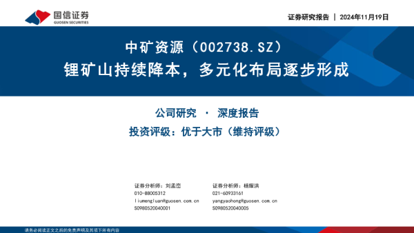 【国信证券】【20241119】中矿资源(002738)锂矿山持续降本,多元化布局逐步形成-30页 行业研究