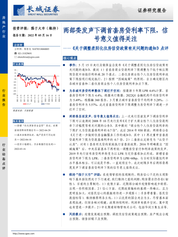 【长城证券】【20220516】关于调整差别化住房信贷政策有关问题的通知点评-3页 行业研究