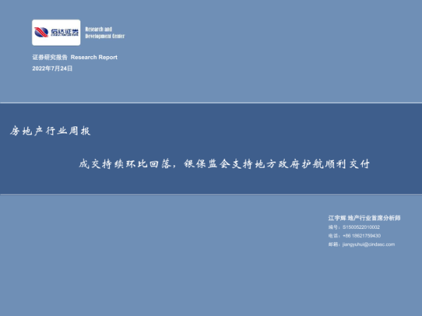 【信达证券】【20220724】房地产行业周报:成交持续环比回落,银保监会支持地方政府护航顺利交付-24页 行业研究