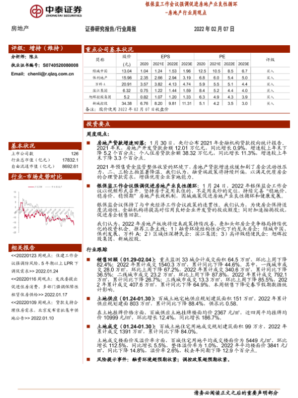 【中泰证券】【20220207】银保监工作会议强调促进房地产业良性循环-11页 行业研究