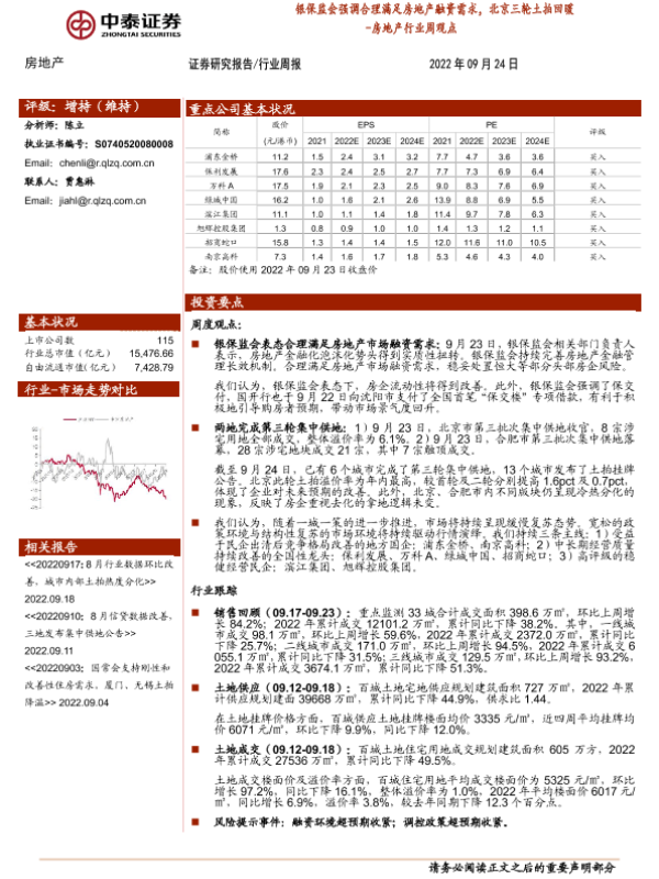 【中泰证券】【20220924】中泰证券-房地产行业周观点:银保监会强调合理满足房地产融资需求,北京三轮土拍回暖-11页 行业研究