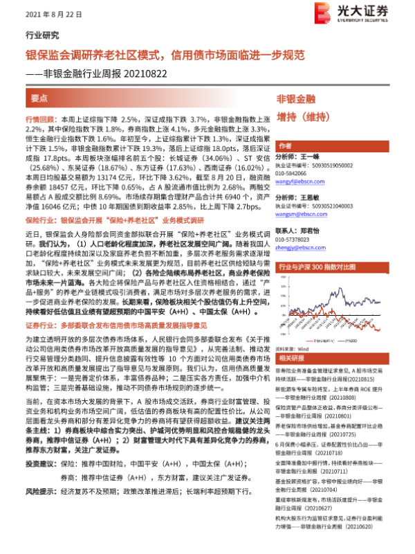 【光大证券】【20210822】非银金融行业周报:银保监会调研养老社区模式,信用债市场面临进一步规范-10页 行业研究
