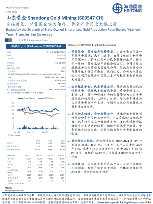 【海通国际】【20230103】交接覆盖:背靠国企实力雄厚,黄金产量同比大幅上涨-16页 行业研究