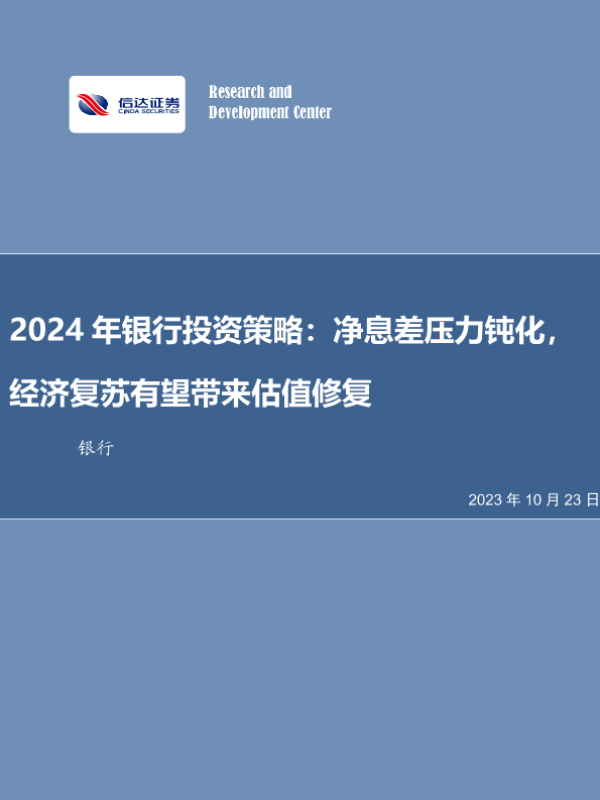【信达证券】【20231023】2024年银行投资策略:净息差压力钝化,经济复苏有望带来估值修复-36页 行业研究