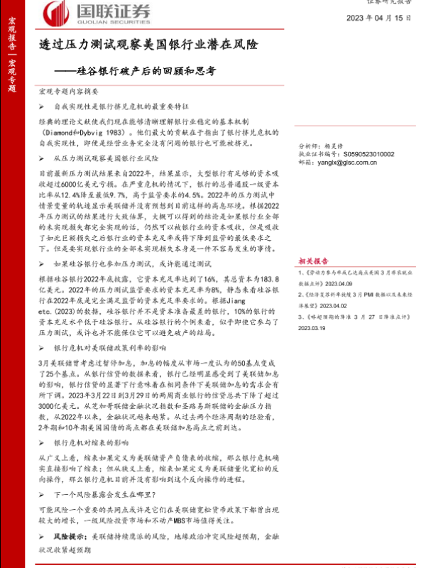 【国联证券】【20230415】硅谷银行破产后的回顾和思考:透过压力测试观察美国银行业潜在风险-35页 行业研究