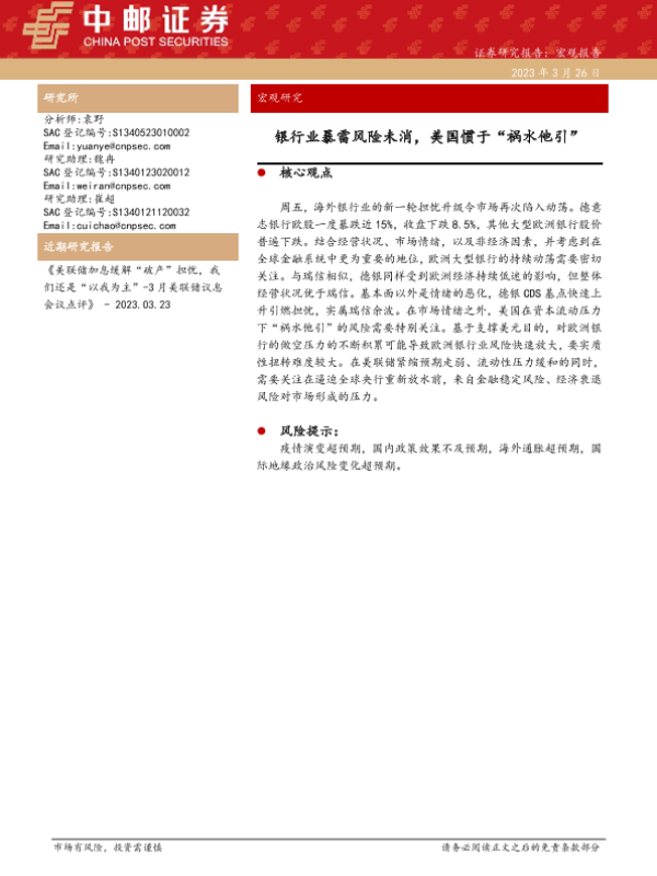 【中邮证券】【20230326】宏观研究:银行业暴雷风险未消,美国惯于“祸水他引”-16页 宏观策略